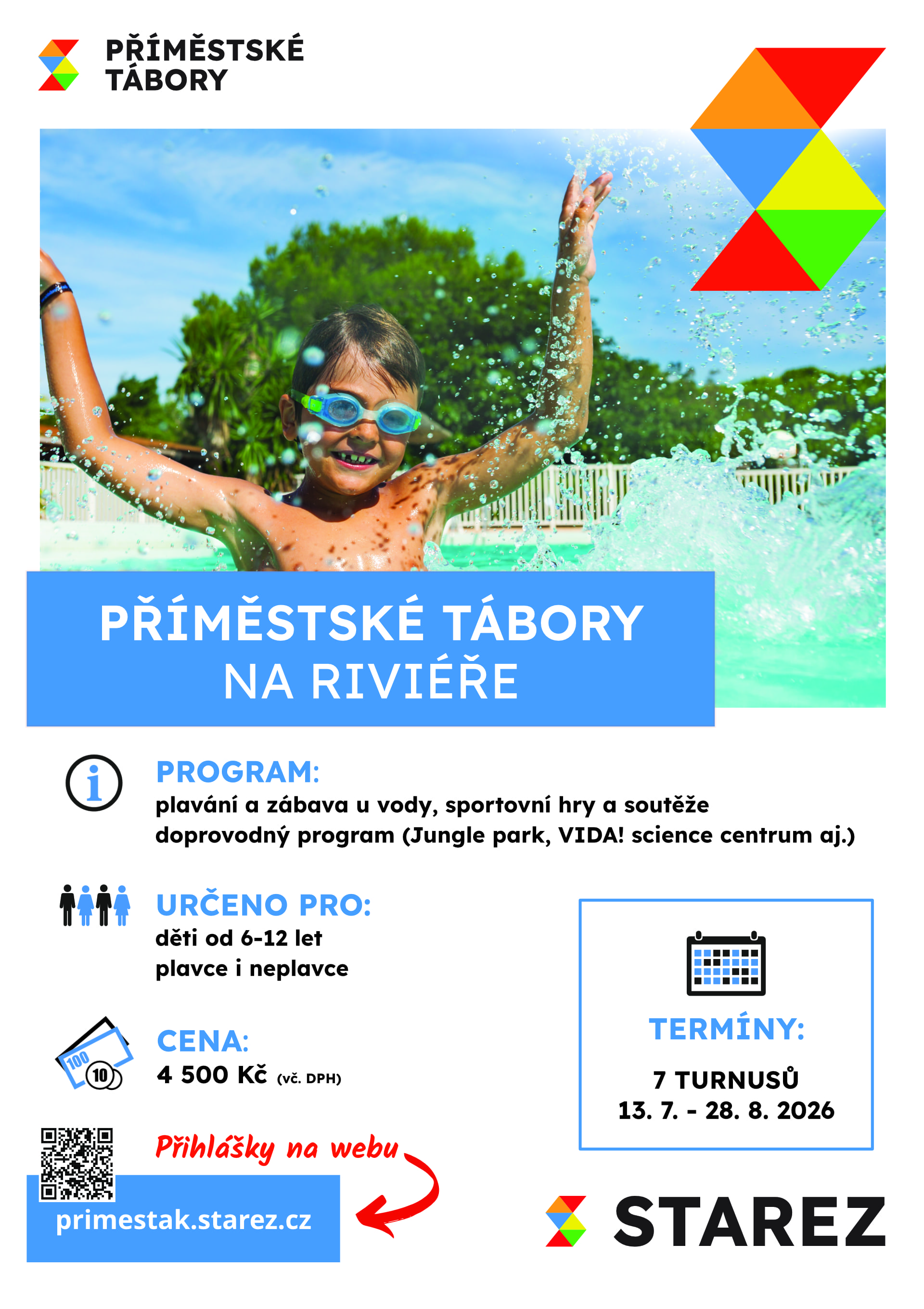 - Vyzvedávání dětí každý den od 15:40 do 16:00 před přední branou na koupaliště Riviéra (stejně jako ráno)